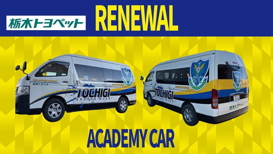 このたび、栃木SCでは、栃木トヨペット株式会社様のご厚意によりご提供いただいておりますアカデミー用車両について、デザインリニューアルのご協賛を賜り、2026年3月25日(水)に車両をご納車いただきましたので、お知らせいたします。