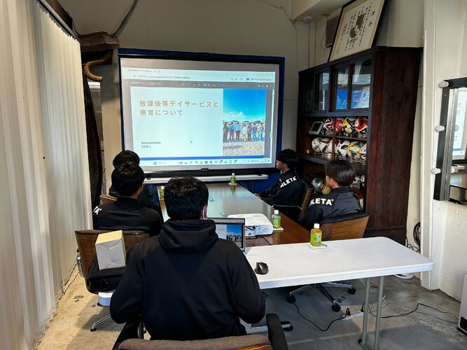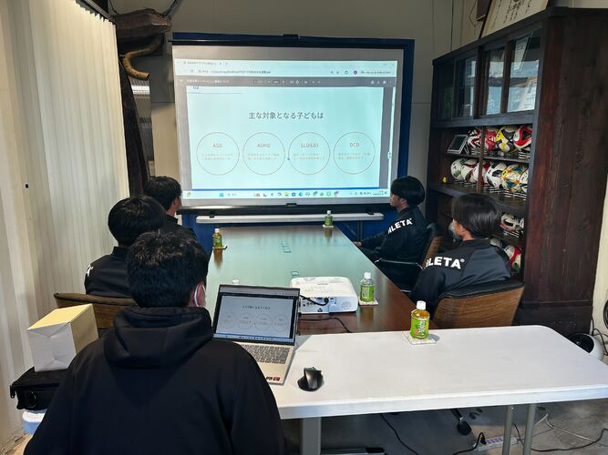 宇都宮市内で放課後等デイサービスを運営しサッカー療育の活動を行っている「カノアスFC」とのサッカー教室に向けて、新人選手に座学研修を行いました。