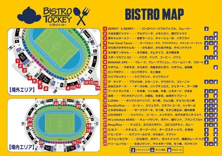 キッズが大好きなグルメを中心とした飲食メニューがスタジアム内に集結。