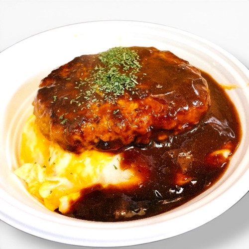 【煮込みハンバーグのデミオムライス】