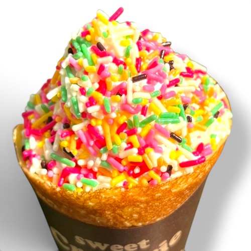 みんな大好きカラースプレーを山盛りクリームにふんだんにかけた夢のようなクレープ!いつもよりモリモリにしちゃいます!