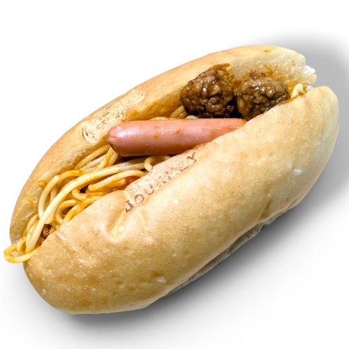 今回はコッペパンをプレートにミートスパゲッティ、ミートボールとウィンナーとお子様に人気の食材を集めました。