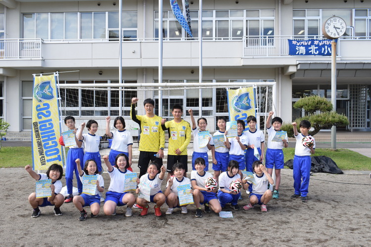 5月9日(木)に宇都宮市立清原北小学校へ丹野研太選手と南野遥海選手が訪問し、5・6年生を対象に2024年度第1回の「ゆめプロジェクト」学校訪問事業を実施しました。