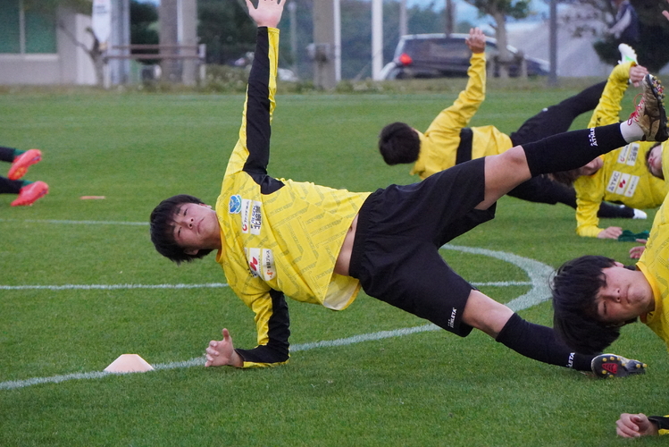 チームは早朝から沖縄へ向けて移動をし、夕方からトレーニング会場である沖縄県うるま市にある具志川運動公園多種目球技場で汗を流しました。