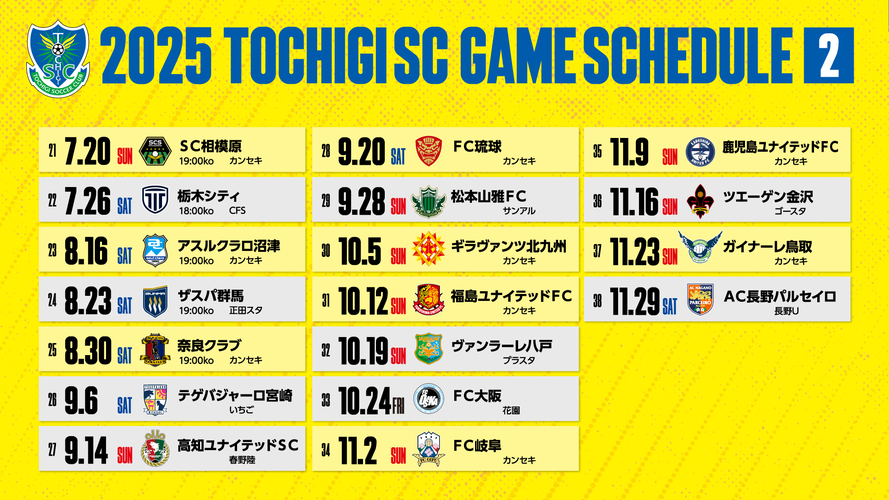 この度、2025明治安田J3リーグの4月〜11月開催分の試合日程が決定しましたのでお知らせいたします。