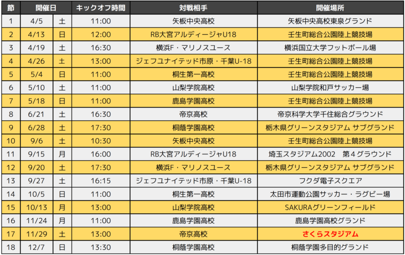 【U-18試合情報】「高円宮杯 JFA U-18 サッカープリンスリーグ2025 関東1部リーグ supported by G-Vinculo」試合日程のお知らせ